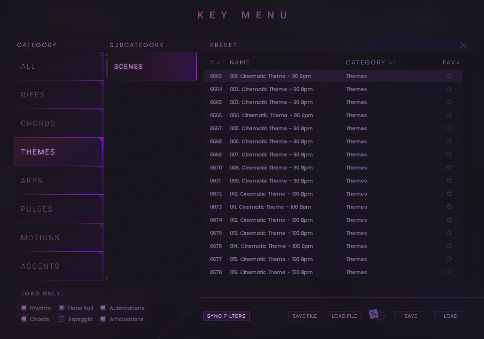 The Main Tab is where most users will spend their time, offering an immediate and accessible way to control articulations and trigger performances. With its Keyswitch and Scenes selectors, switching between playing styles and activating phrases is straightforward, making it easy to get started without diving into advanced programming. This tab ensures a smooth workflow for composers who want quick, mix-ready results without heavy customization.
